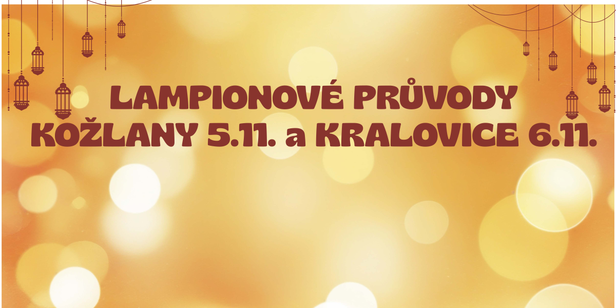 Zveme všechny na tradiční lampionový průvod městem Kožlany. Sejdeme se v 17h v parku před městským úřadem a v 17.15h společně vyrazíme do cíle, kde na nás bude čekat překvapení. V cíli se můžete těšit na malé občerstvení. Takže vsichni lampionky do ruky a vyražte s námi do ulic Kožlan rozloučit se s podzimní přírodou.
